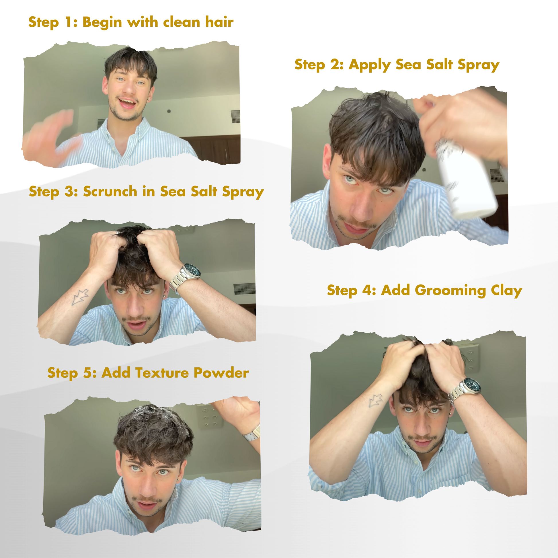 - Spray Sea Salt Spray evenly all around your head, 4-8 sprits