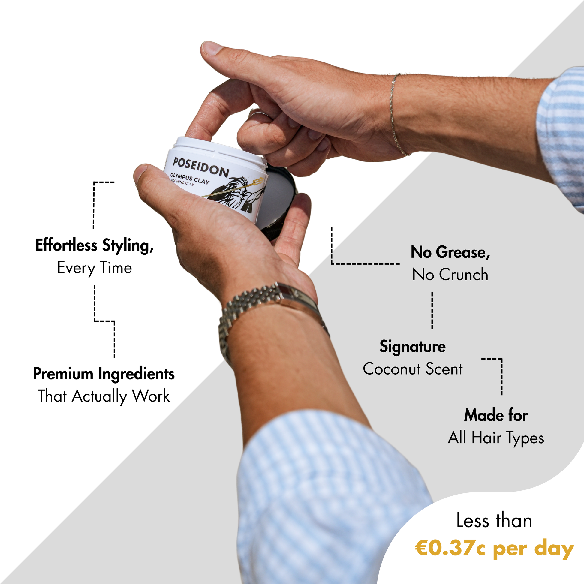 🎯 Grooming Clay: Create a messy, textured style with strong hold and a matte finish. Stays in place all day for a polished, rugged look